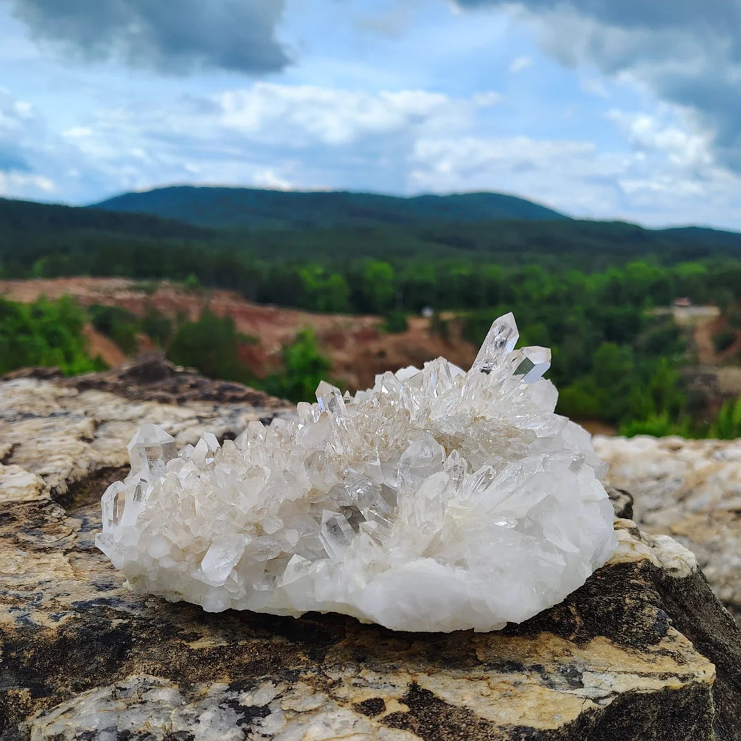 Buy natural quartz crystal points and clusters directly from our world-famous Arkansas quartz mine. Although we are known for having the clearest crystals in the world, you will find a variety of sizes, levels of clarity, and price ranges on this website. Use the convenient chat button to ask our experienced staff members questions. Shop Pay payments are offered at checkout. Choose from 4 bi-weekly, interest-free payments up to 18 months to pay with interest.