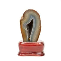 This premium home decor piece combines a naturally beautiful agate stone with a simple wooden stand, creating a timeless, elegant accessory to any room. Agate has long been appreciated for its unique colors and swirling patterns and is renowned for its calming energy. This distinctive piece is sure to impress.