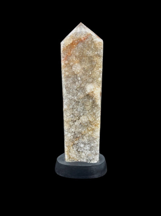 Measurements: This Agate piece stands 9.25 inches tall and is 4 inches wide at the base of the wooden stand that it is on.