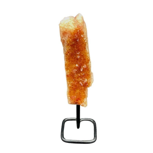 This Citrine crystal specimen is attached to a black metal stand. The Citrine specimen is not permanently attached to the stand. It can easily be removed.