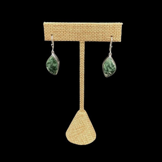 These beautiful, dangle, pierced, sterling silver (925) earrings set off the lovely green hue of the Seraphinite gemstones. These gemstones are known for their healing properties, making this a meaningful accessory. These earrings will make a perfect gift for any occasion.