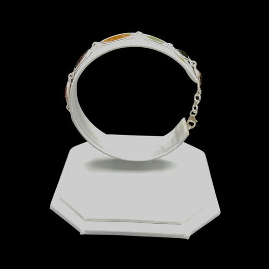 This Sterling Silver and Tourmaline Gemstones Bracelet is a stunning piece of jewelry. Crafted from sterling silver and featuring beautiful tourmaline gemstones, this bracelet is sure to make a statement. The silver is tarnish resistant and the tourmaline is known for its healing and protective powers, making this bracelet an ideal choice for any jewelry wearer.