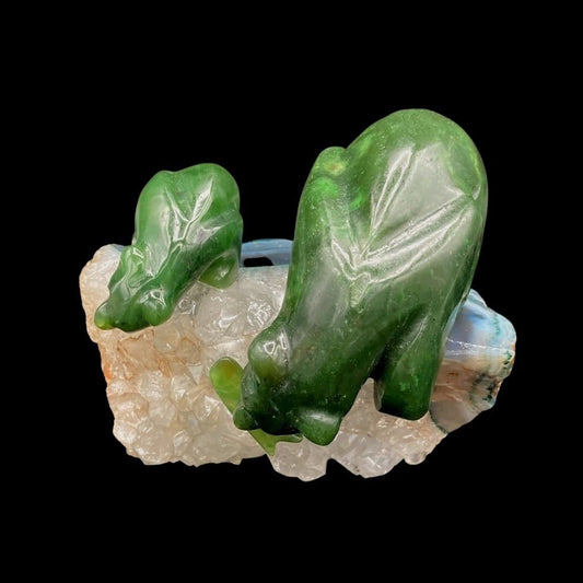 Star Marble Polar Bear Leaning on Nephrite Jade Stand