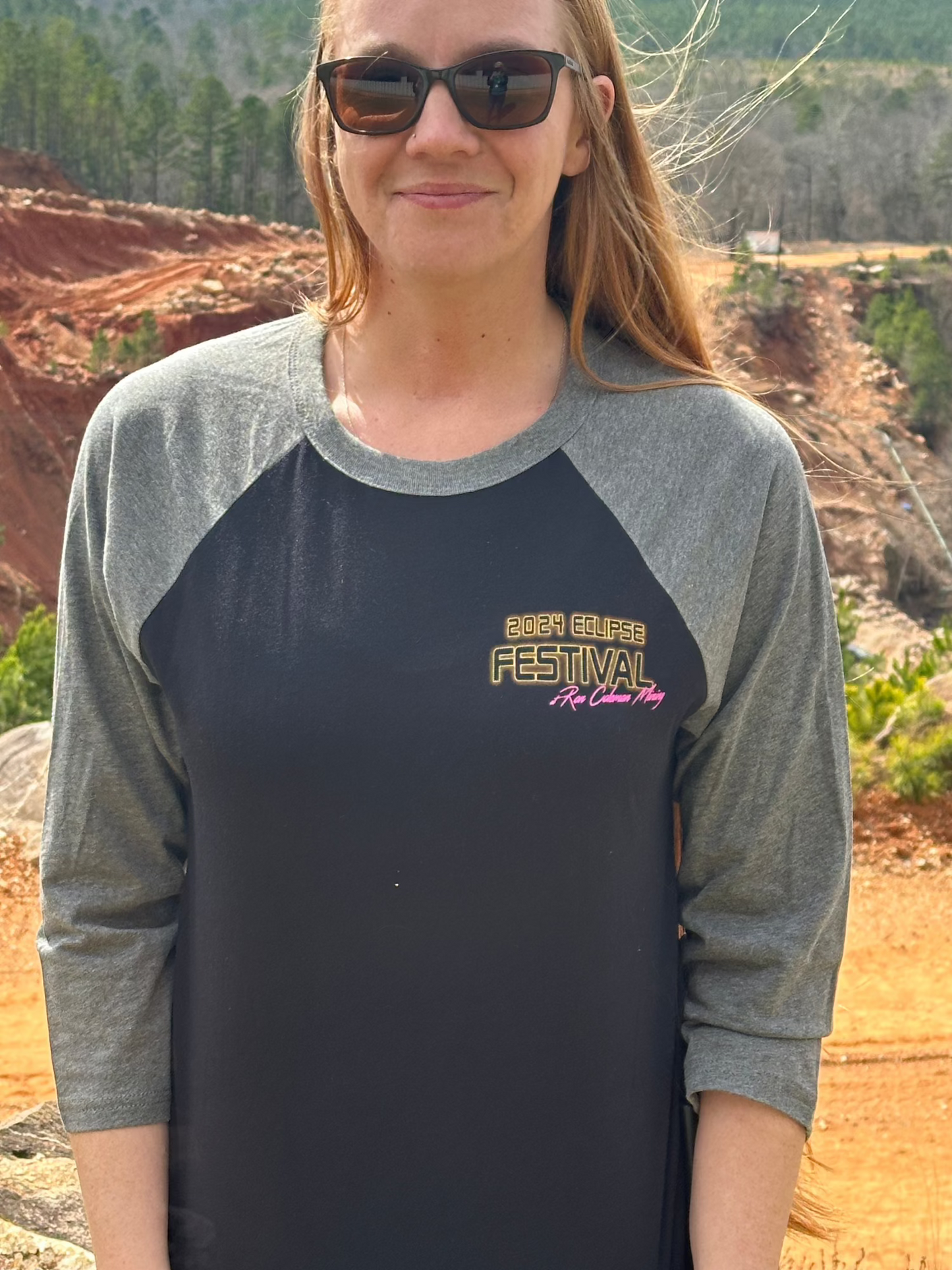 2024 Eclipse Festival Baseball Style Black Gray T-Shirt