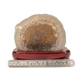 Cleaning: Use a slightly damp cloth to clean the polished front of the Agate and a dry soft paint brush on the back of the Agate. Furniture polish is excellent to use on the wood base.