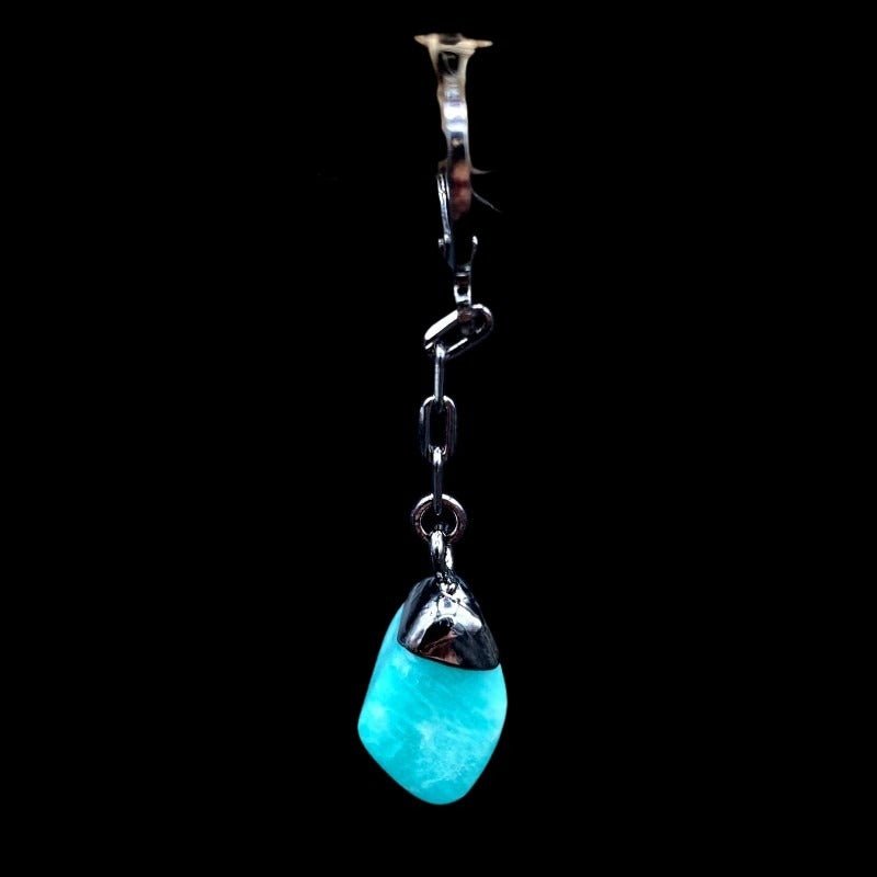 The beautiful blue color or this Amazonite reminds us of the Caribbean. Amazonite stone is also referred to as "Colorado jade" or "Pikes Peak jade" because of its resemblance to jade. Amazonite is usually pale green, but can sometimes be blue-green, turquoise or yellow-green and can also have white streaks.
