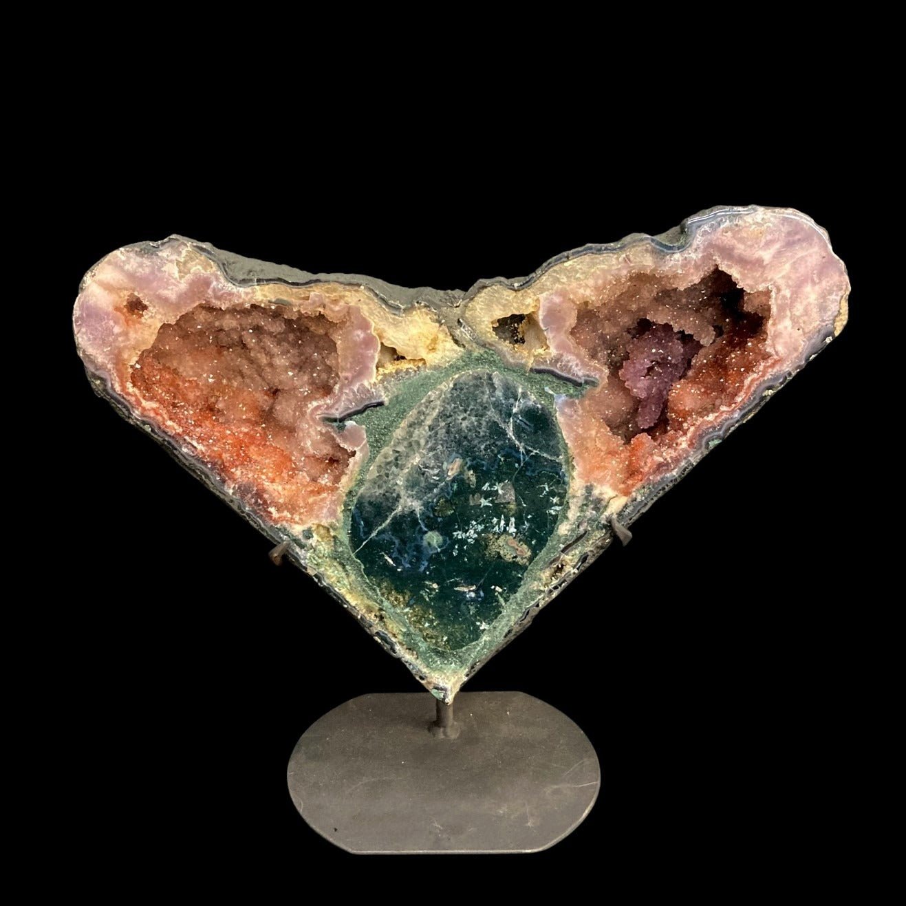 Measurements: This Amethyst heart stands 12 inches tall and is 13.5 inches wide. Also, the metal stand that you see in the pictures is included.