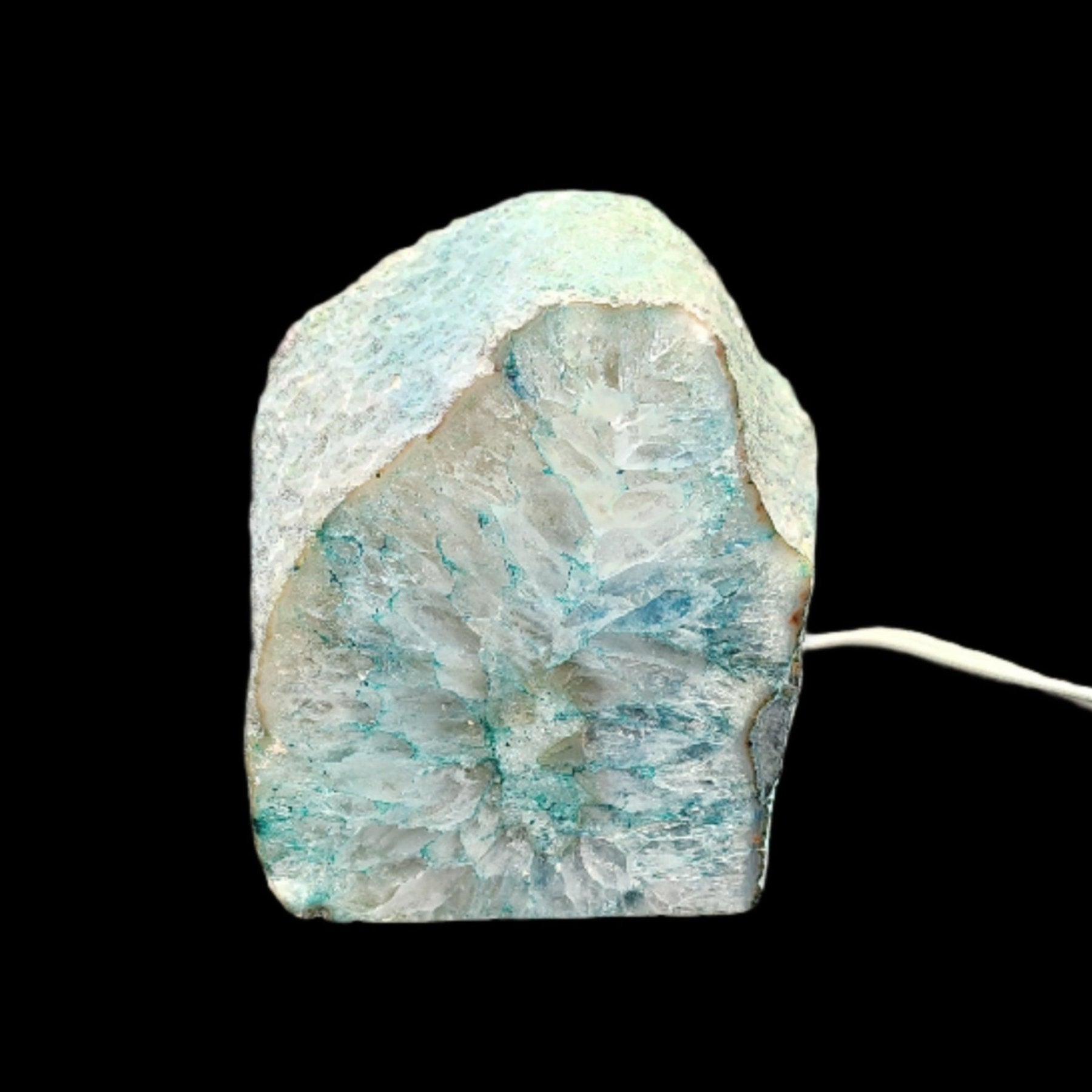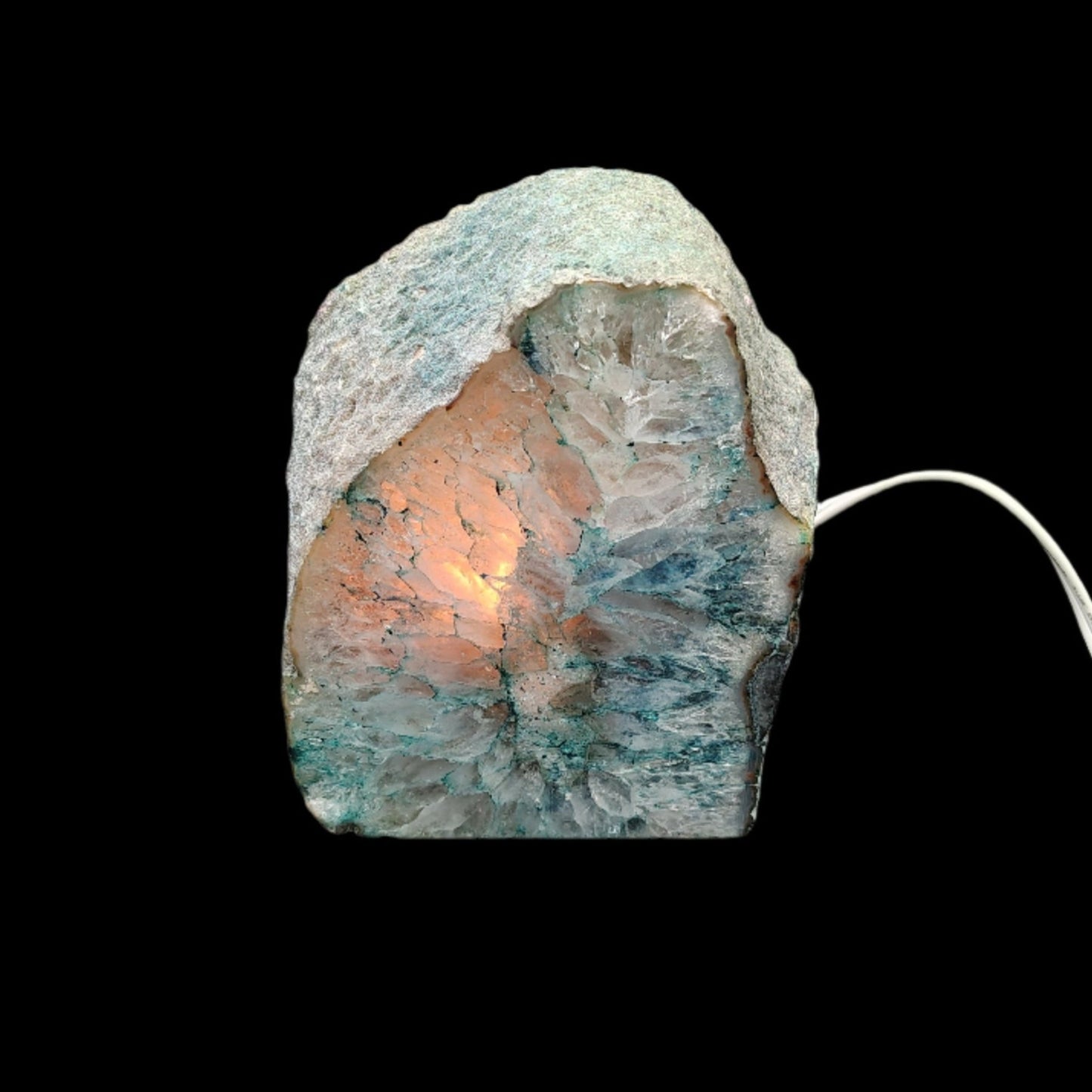 Beautiful, blue-polished Agate table lamp nightlight. Perfect for your bedroom or meditation room.
