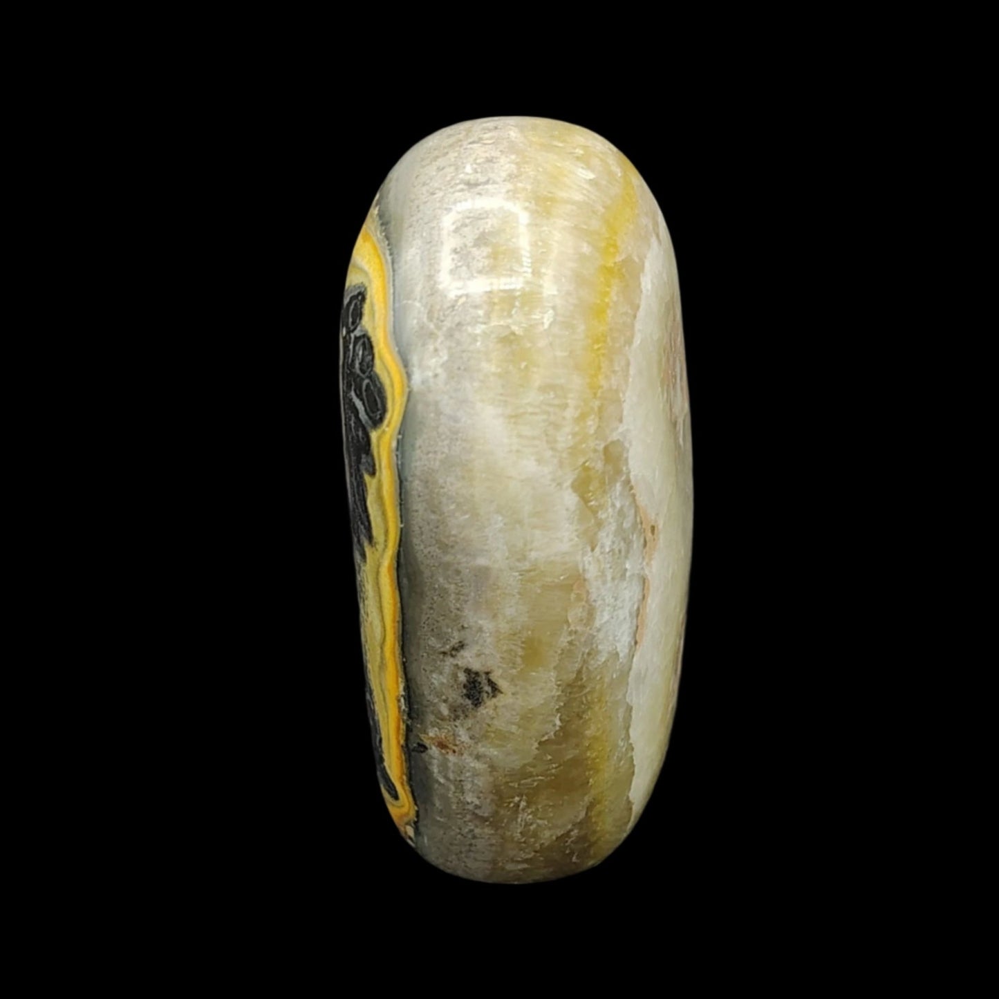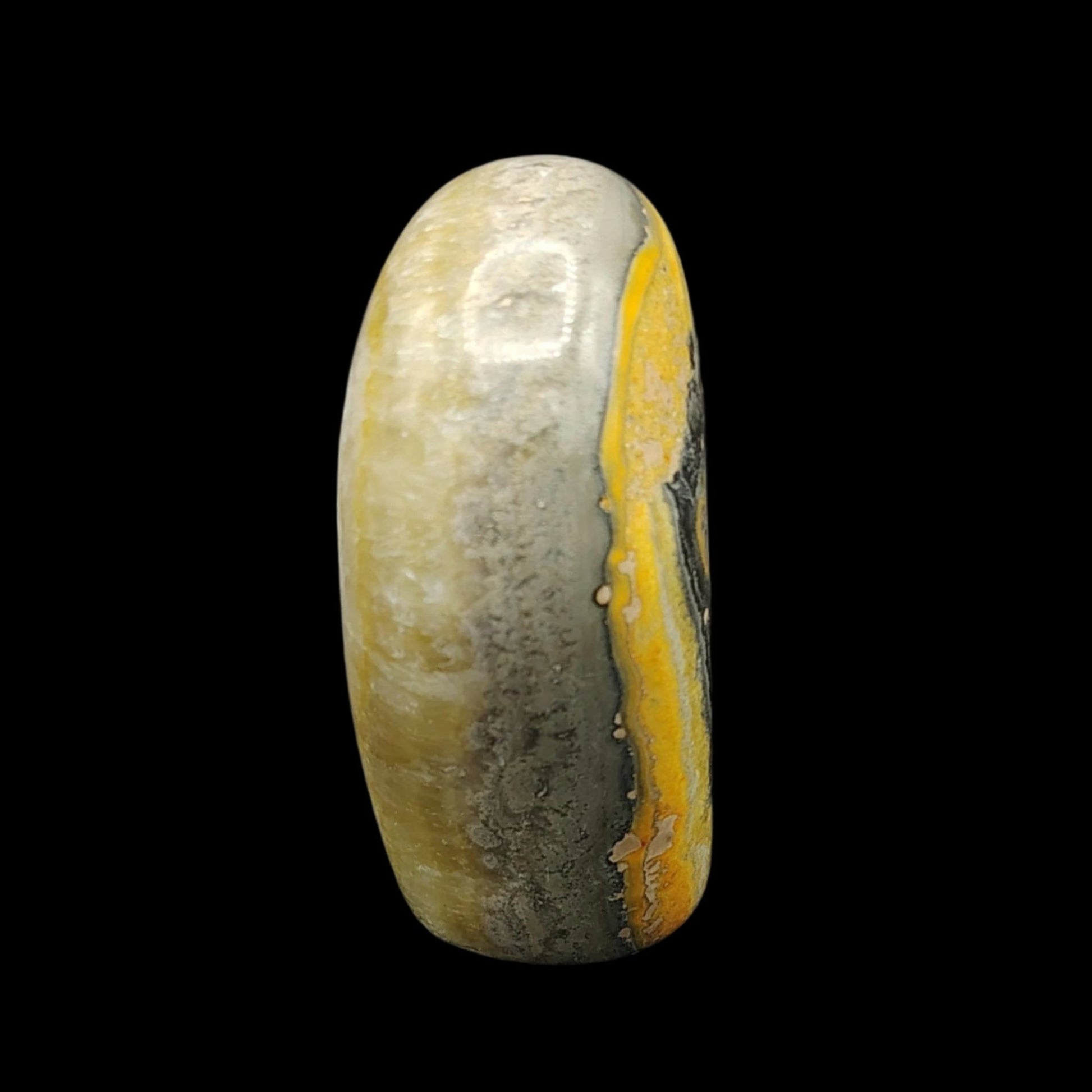 Bumble Bee Jasper is a stone of strength, courage, transformation, and opportunity. This black and yellow stone offers inspiration and enhances creativity and passion while heightening the ability to focus. It is a powerful stone for manifestation.