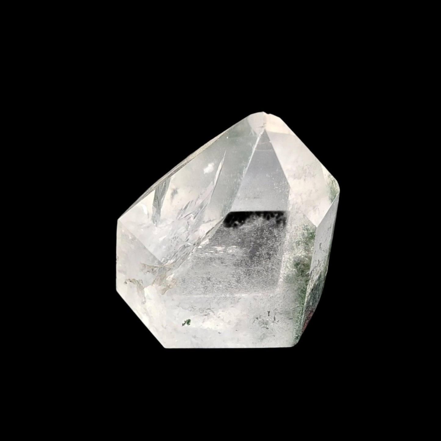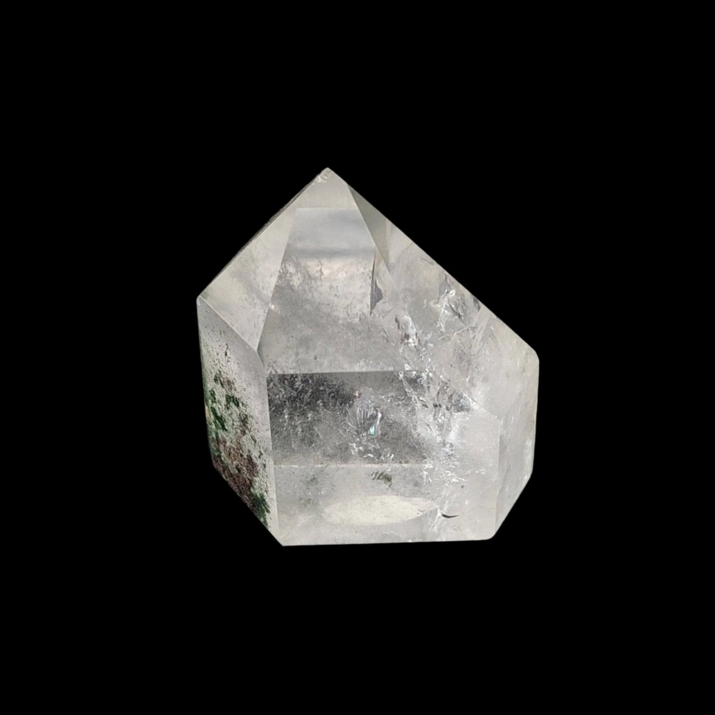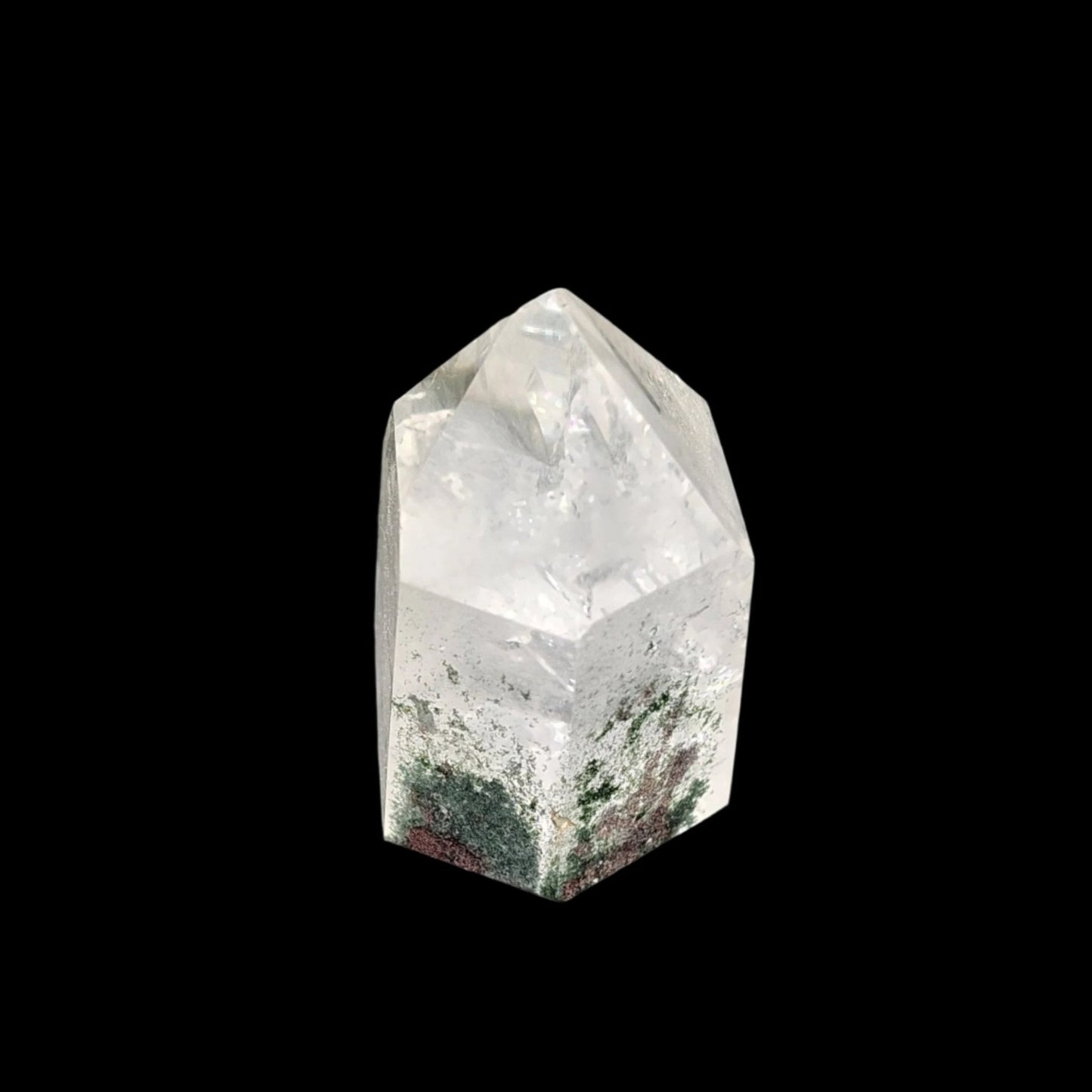 Are you seeking a purifying and cleansing crystal? This Brazilian crystal has natural chlorite which is considered a purifying mineral. Place it in your space to add sparkle and healing or use it as a meditation stone. This specimen is cut and polished using lapidary equipment to create the points and sides unlike quartz crystals mined at our mine, which form naturally with beautiful points and sides. Chlorite quartz is a beautiful quartz. The beauty of the green chlorite that includes this crystal is stunning. As with all crystals, this is one-of-a-kind. There is no other specimen that looks exactly like this one. Don't miss out! Buy this specimen and enjoy the energy and beauty.