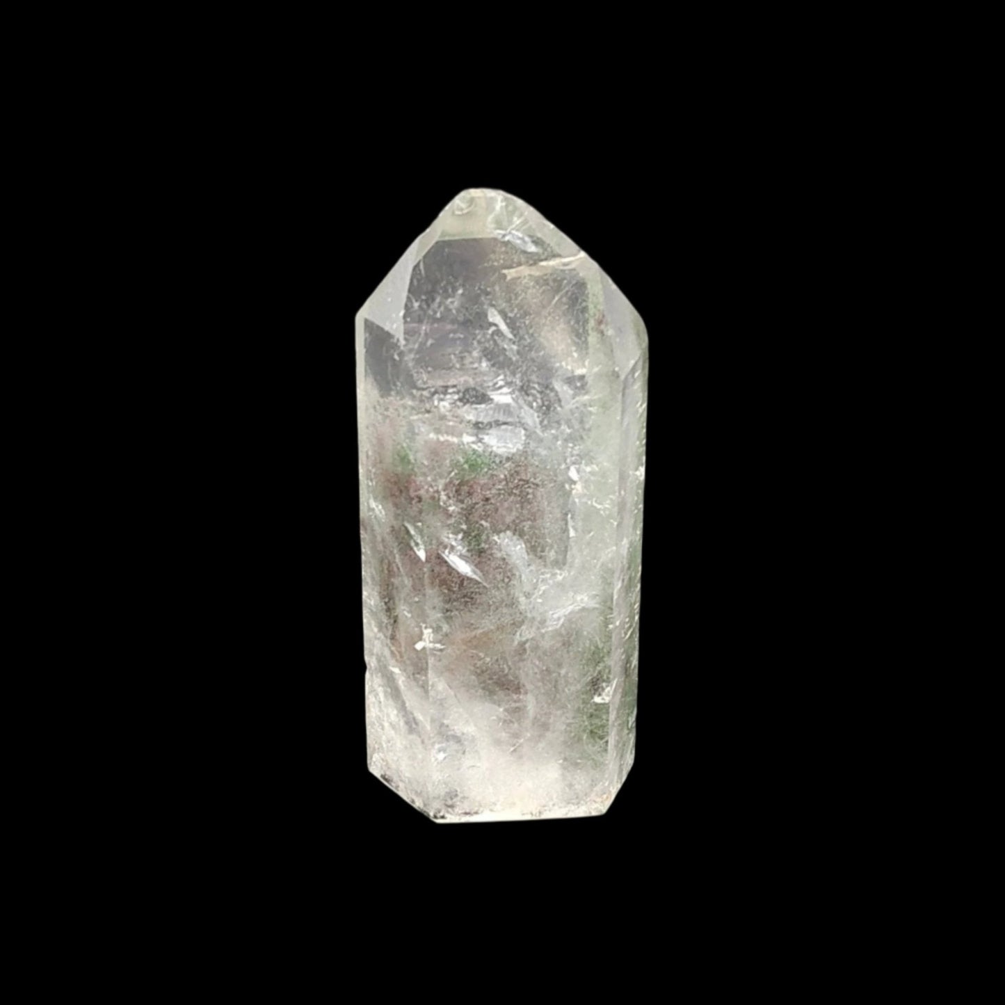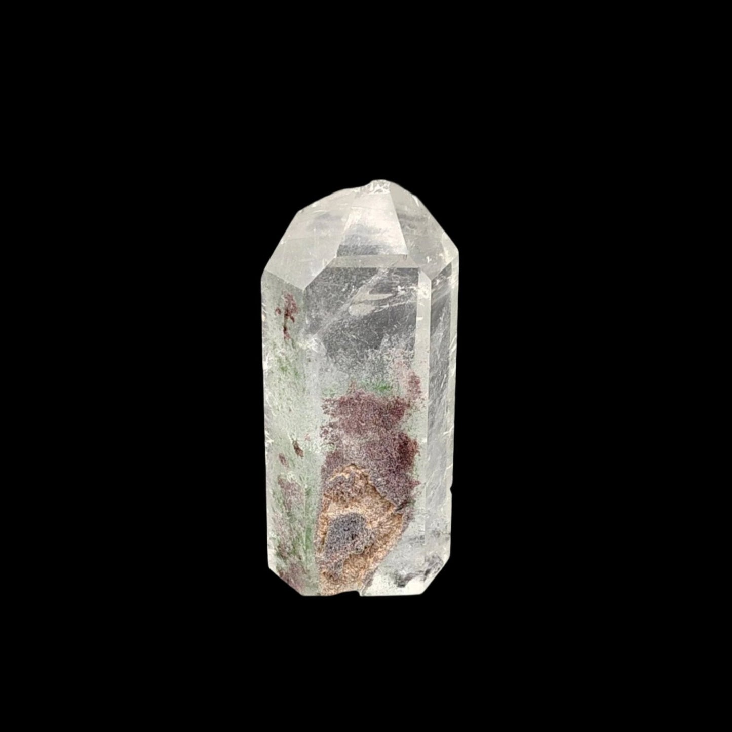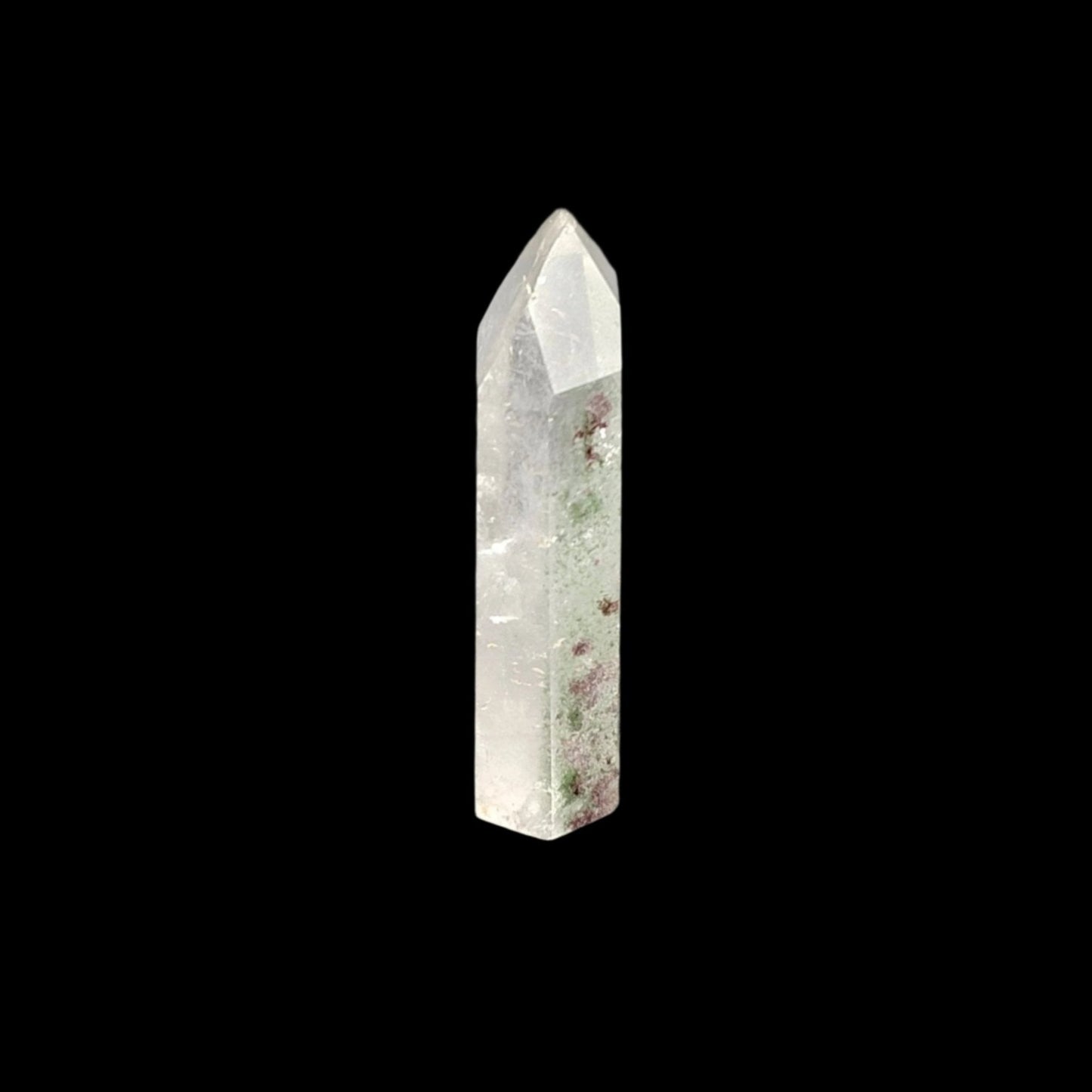 Chlorite Quartz is the name given to any quartz included or coated with chlorite. Chlorite deposits on the quartz surface and grows larger, forming a green ghost crystal within the quartz itself. The smaller green ghost crystal is referred to as a Phantom Quartz.