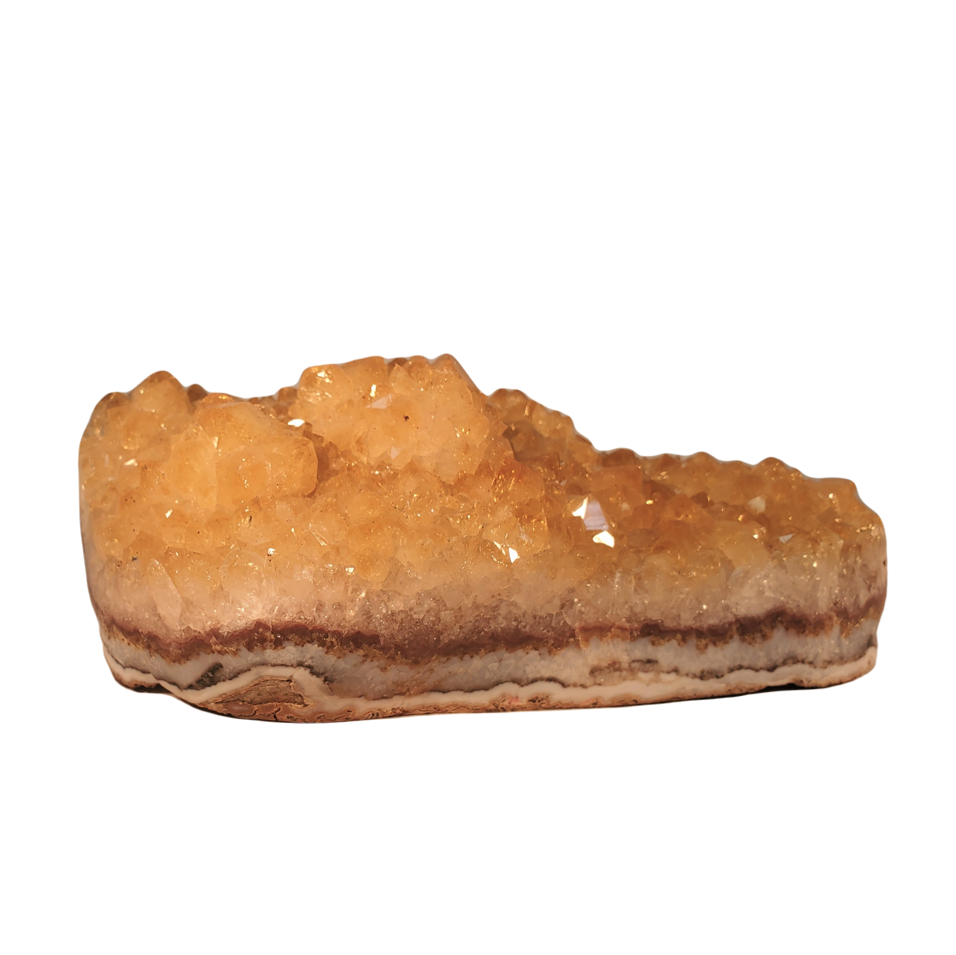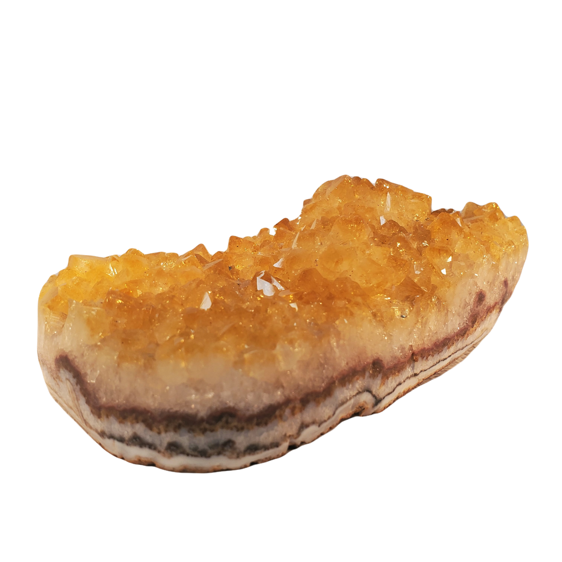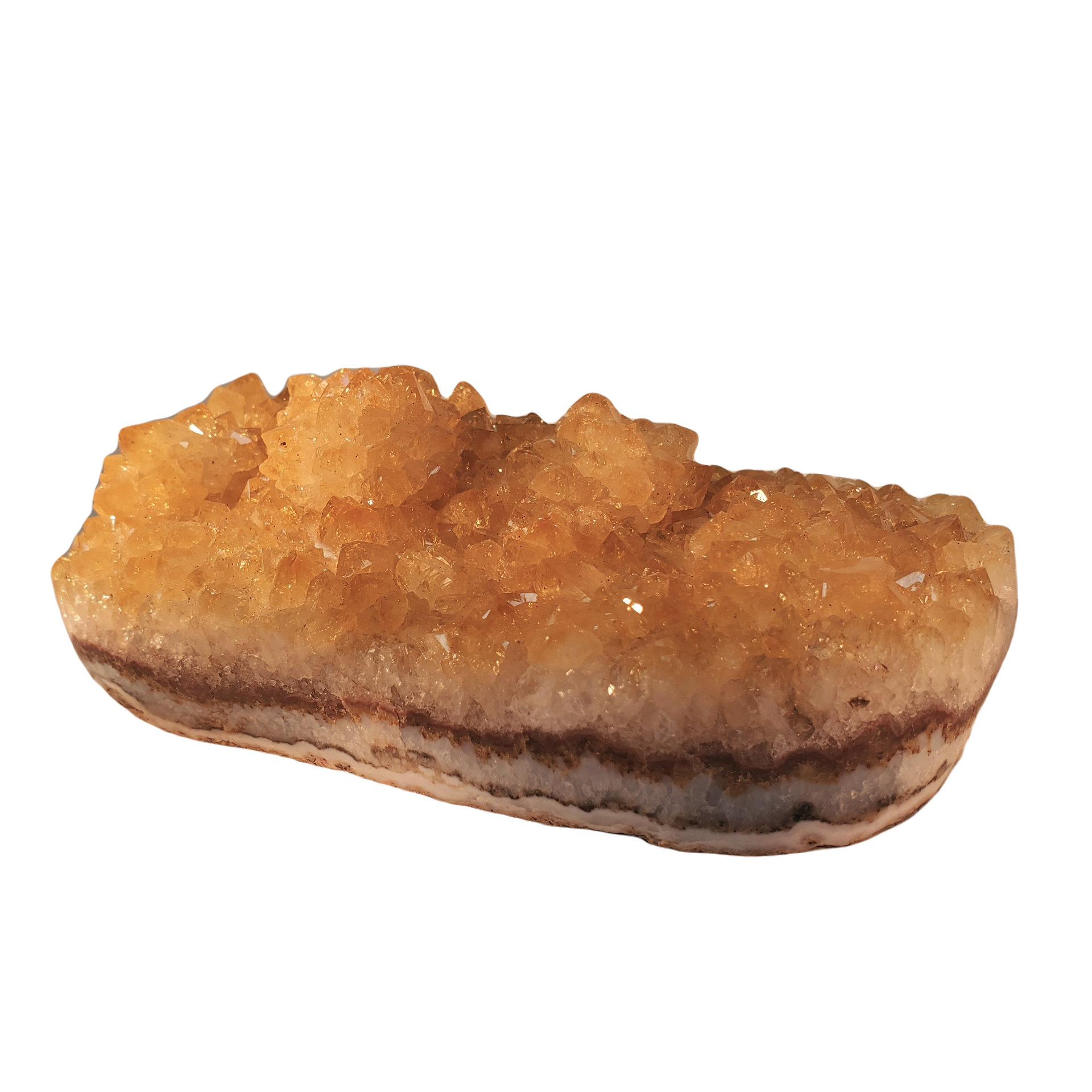 This one-of-a-kind 2-tone enhanced Citrine geode is hand-cut to form a unique Citrine specimen.  The two-tone coloration and unique cut of the base create a stunning home decor accent piece that is sure to impress.  Please take a moment to browse all the quartz druzy specimens we carry.