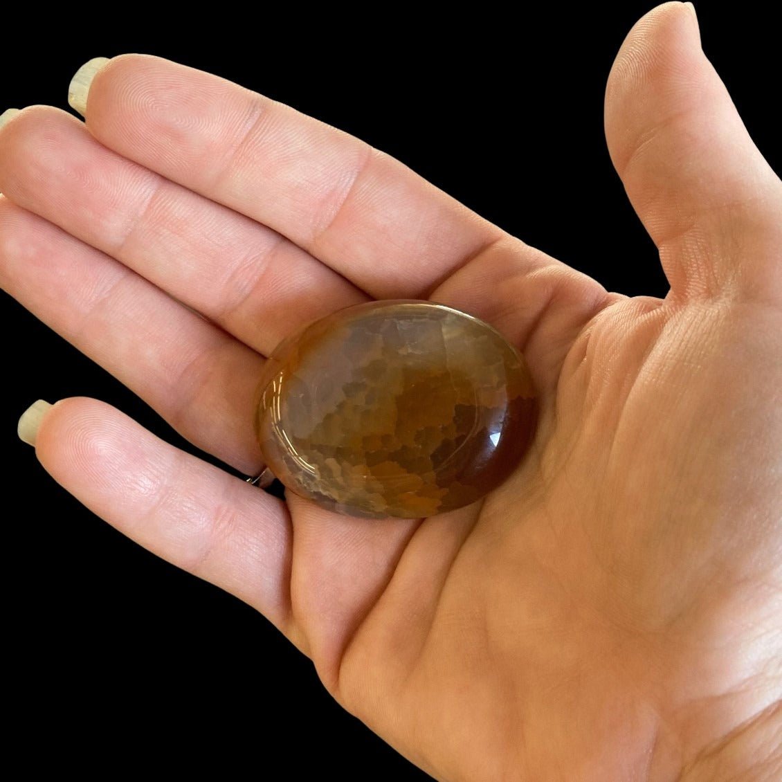 Measurements: This Carnelian Palm Stone is 2 inches long and 1.5 inches wide.