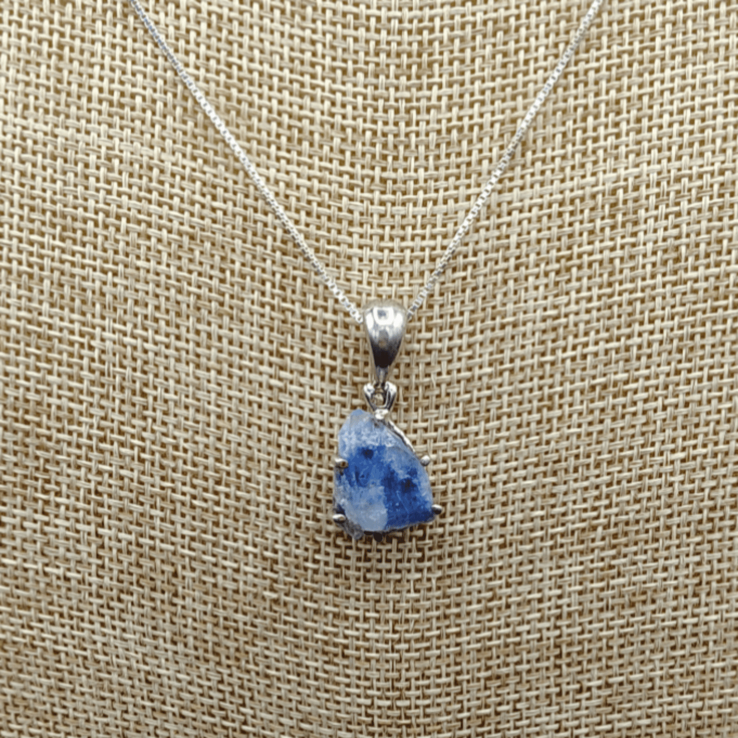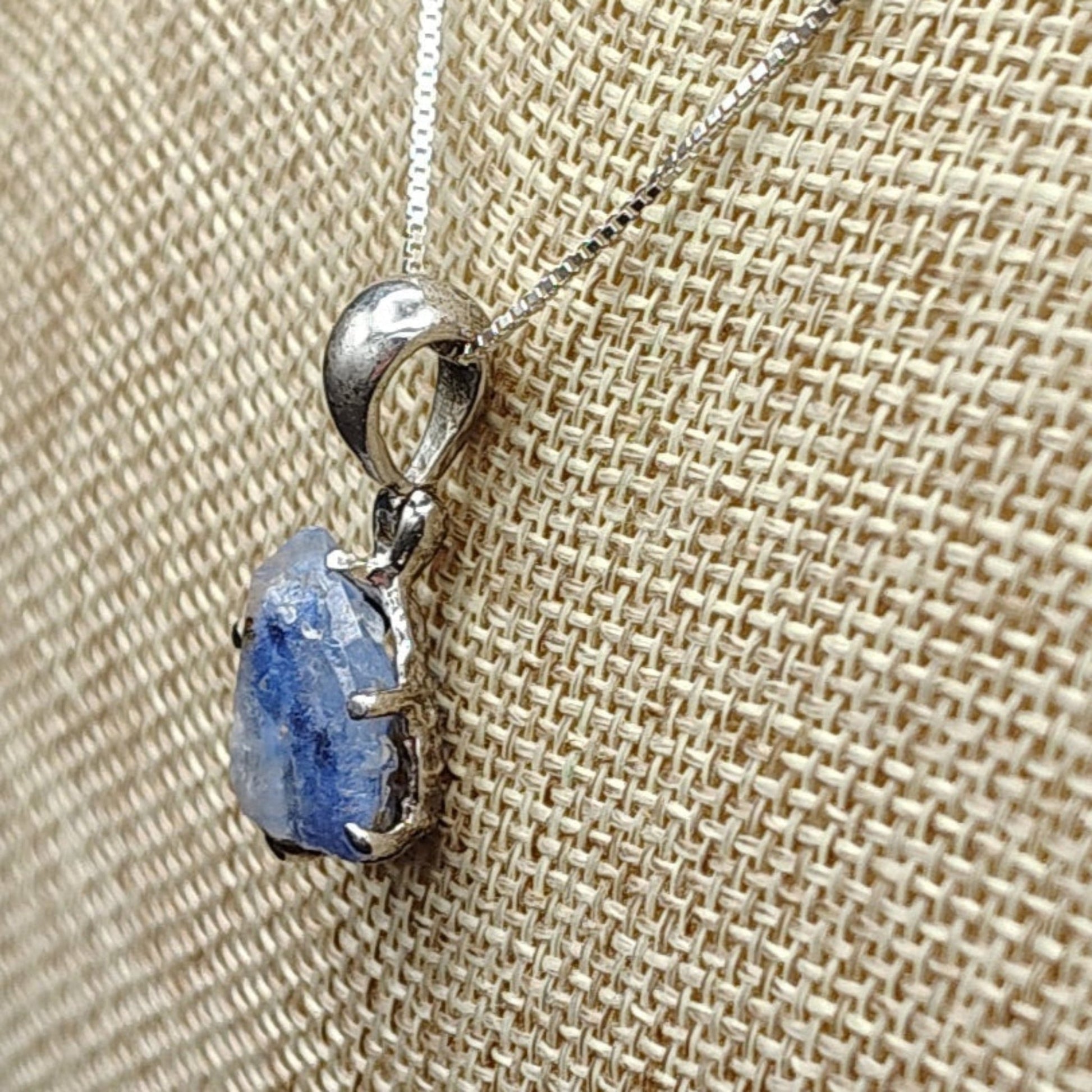 This beautiful blue dumortierite pendant is set on a sterling silver box chain, crafted to last and add the perfect glimmer to your look. The blue dumortierite gemstone is known for its durability and is known to aid in calming and grounding emotions. Adorn yourself with a truly timeless piece that adds sophistication to any ensemble.