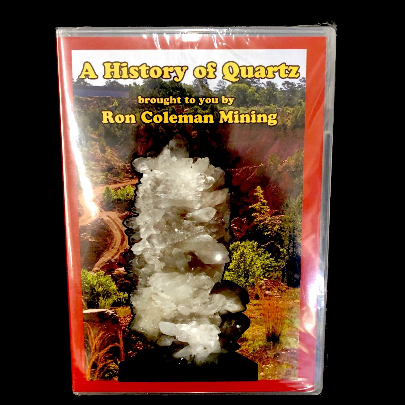 History of Quartz DVD. A great gift for a rockhound and specimen lover. Experience the life of a quartz crystal from forming in the ground, all the way to being in our showroom. See the work to remove the quartz from the earth and view the care taken to preserve these beautiful specimens. You will also learn about the history of Ron Coleman Mine, how we process the crystals we unearth, and see photos of our quartz crystal mining operation.