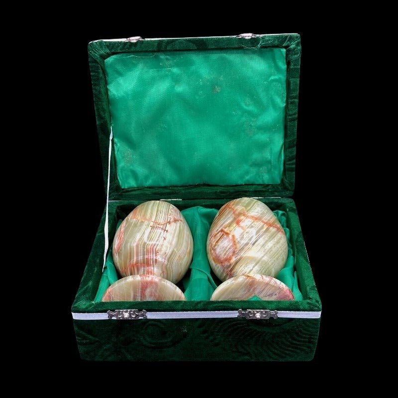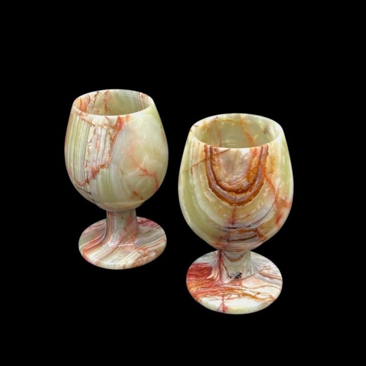 Sip in style with this luxurious, green-banded onyx wine goblet set. Each exquisite goblet, made from beautiful, green-banded onyx, enjoys the timeless elegance of fine craftsmanship. The accompanying velvet storage box keeps them safely stored and ready to use. Make your next social gathering truly memorable with this exquisite set!