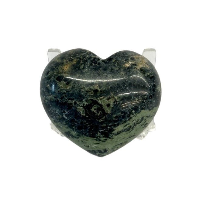 Discover the beauty of Kambaba Jasper. This unique gemstone is carefully carved into a heart that is perfect for home decor. Kambaba Jasper is known for its calming and grounding properties, making it a great addition to any home.