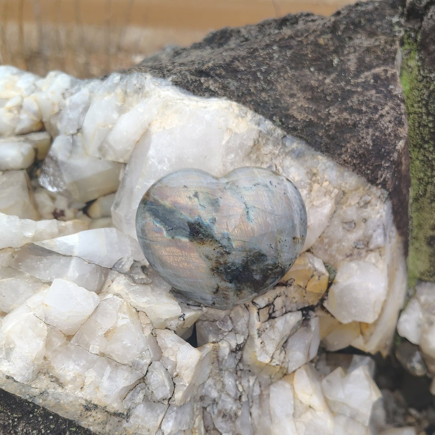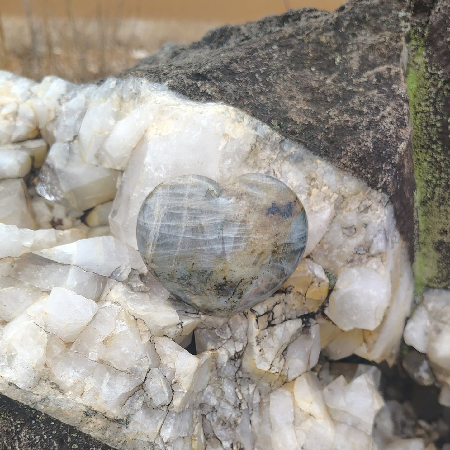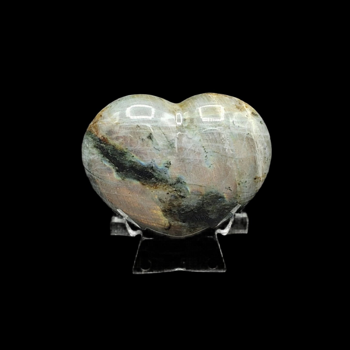Approximate measurements: This Labradorite heart is 3 inches wide, 2.50 inches tall, and 1 inch in depth.