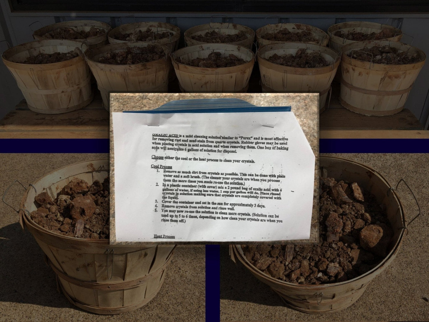 We will provide a basket of assorted crystal points (mud included as shown in the photos) Weight will vary on this listing and understand the weight may be as much as 55 pounds. There is no guarantee of quality nor size of crystals within the bag because there is no sorting of materials in the baskets. They are simply filled and brought up from the new pocket. The material is loaded in the baskets. We then place them in Ron Coleman dig bag(s) to ship to you.
