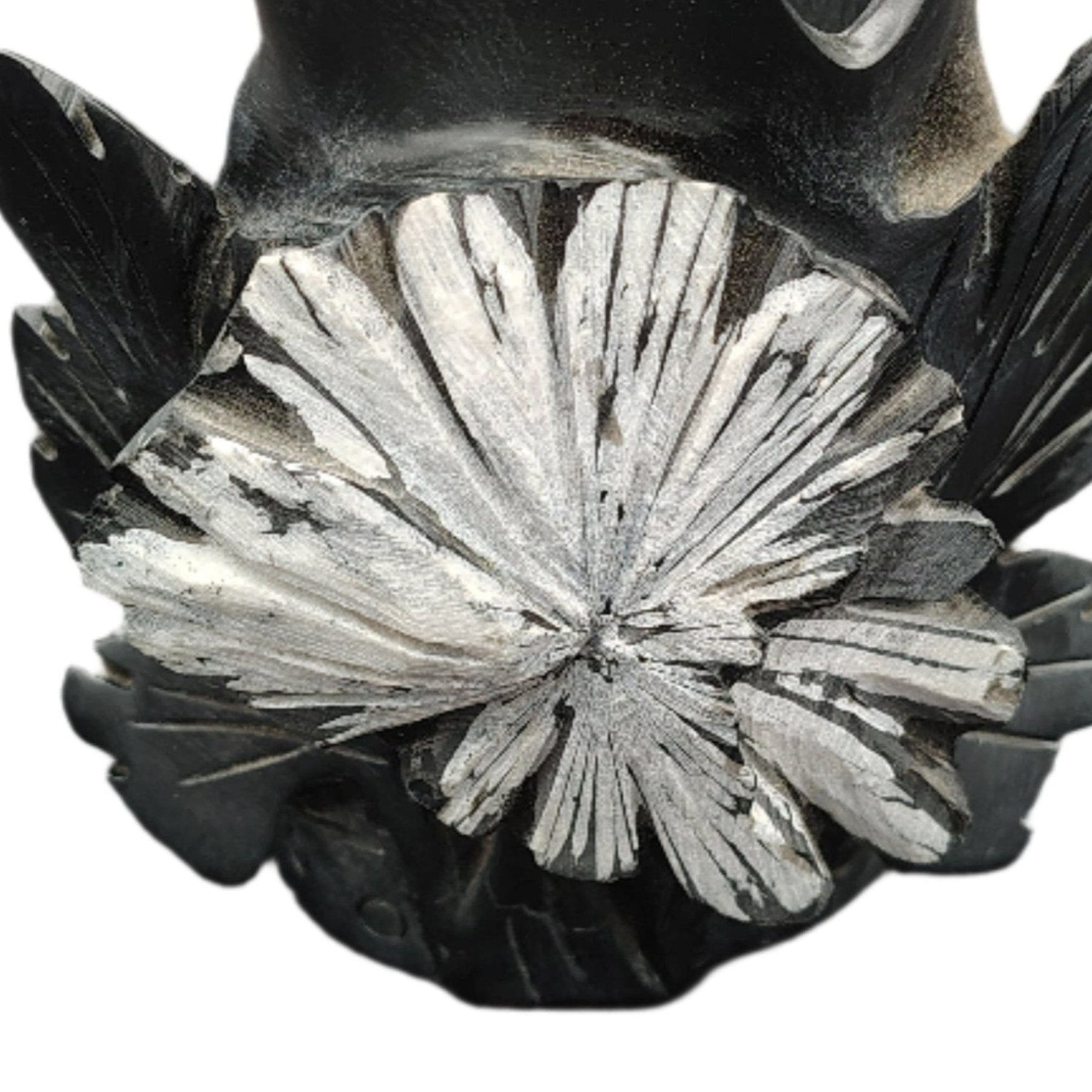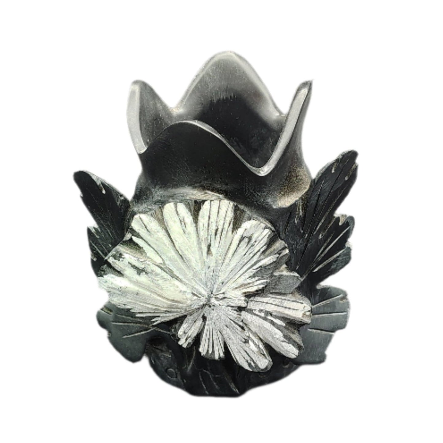 This gorgeous natural vase is made from a Chrysanthemum stone. It is also known as the flower stone. It gets the name flower stone due to the variations and white patterns that look like a Chrysanthemum flower.