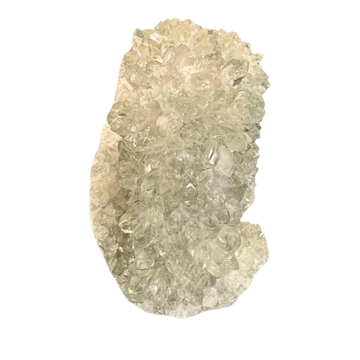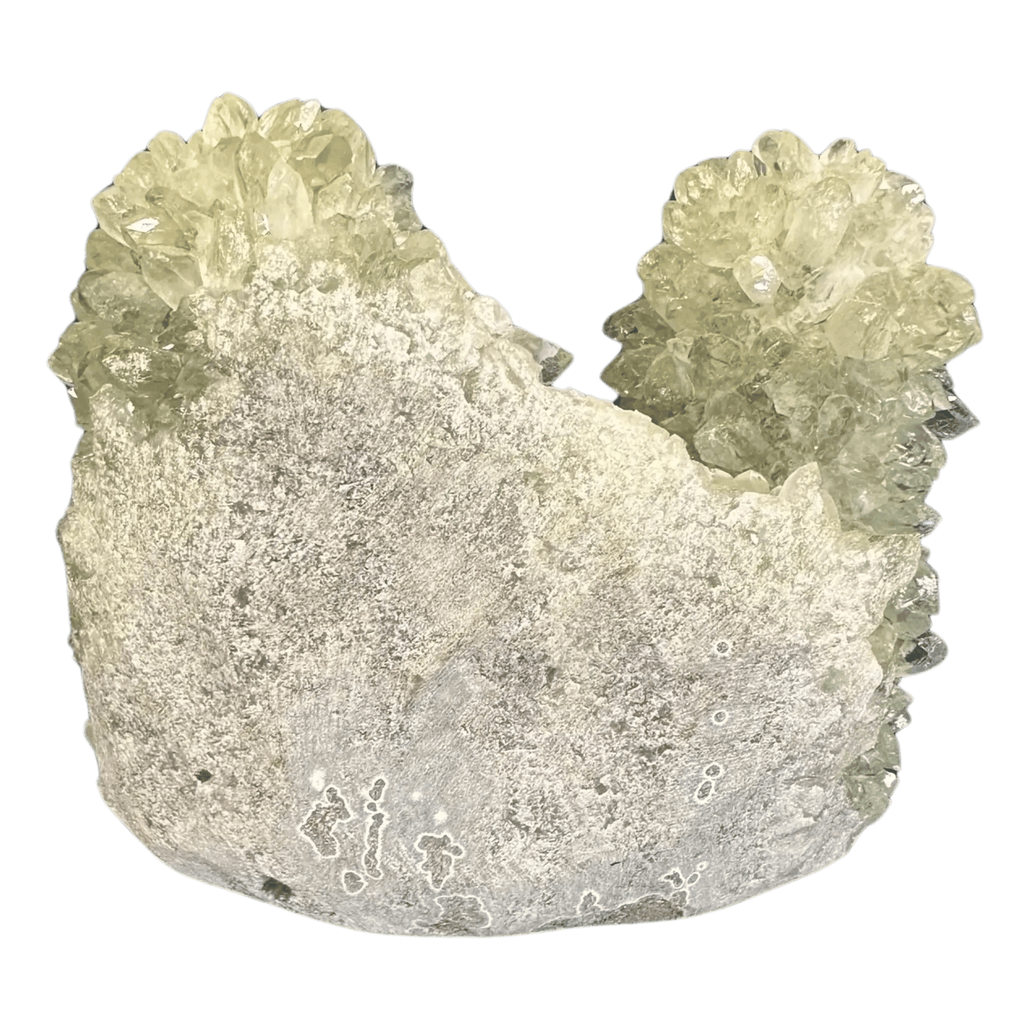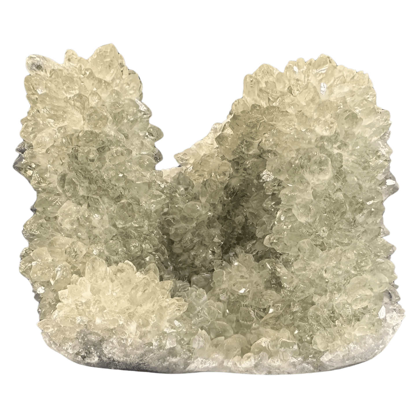 This is a beautiful multiple-point , quartz crystal rock specimen from India. Sparking, green, asymmetrical stalagmite shape for home interior decor accessory. This specimen looks very much like a coral formation in shape. Place this rock specimen with other specimens on a shelf or in a bowl for a unique look. This mineral is also referred to as natural aurora quartz.