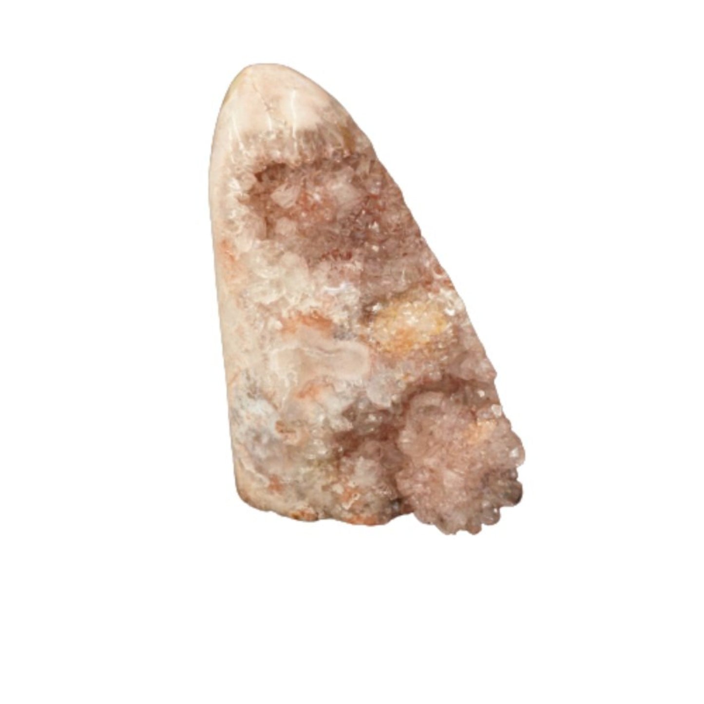 Beautiful piece of pink Amethyst quartz. Features polished and drusy sides. Pink Amethyst is known to instill feelings of understanding, calmness, trust, and grace. Bring these properties to any space where you place this crystal specimen. Place this beautiful pink amethyst in any area of your home as a beautiful accent for decor. It will definitely be a conversation starter.