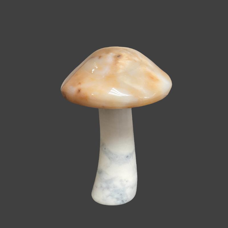 The polished agate mushroom figurine has been hand-carved and polished.