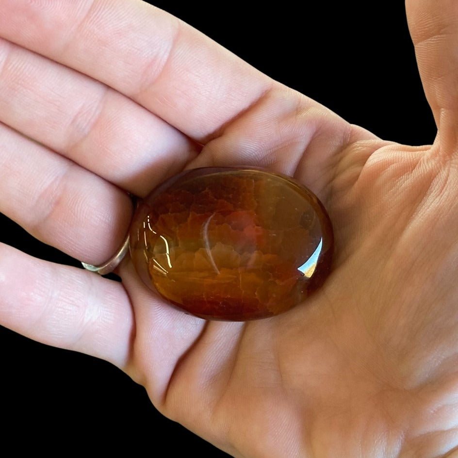 Measurements: This Carnelian palm stone is 2 inches long and is 1.25 inches wide.