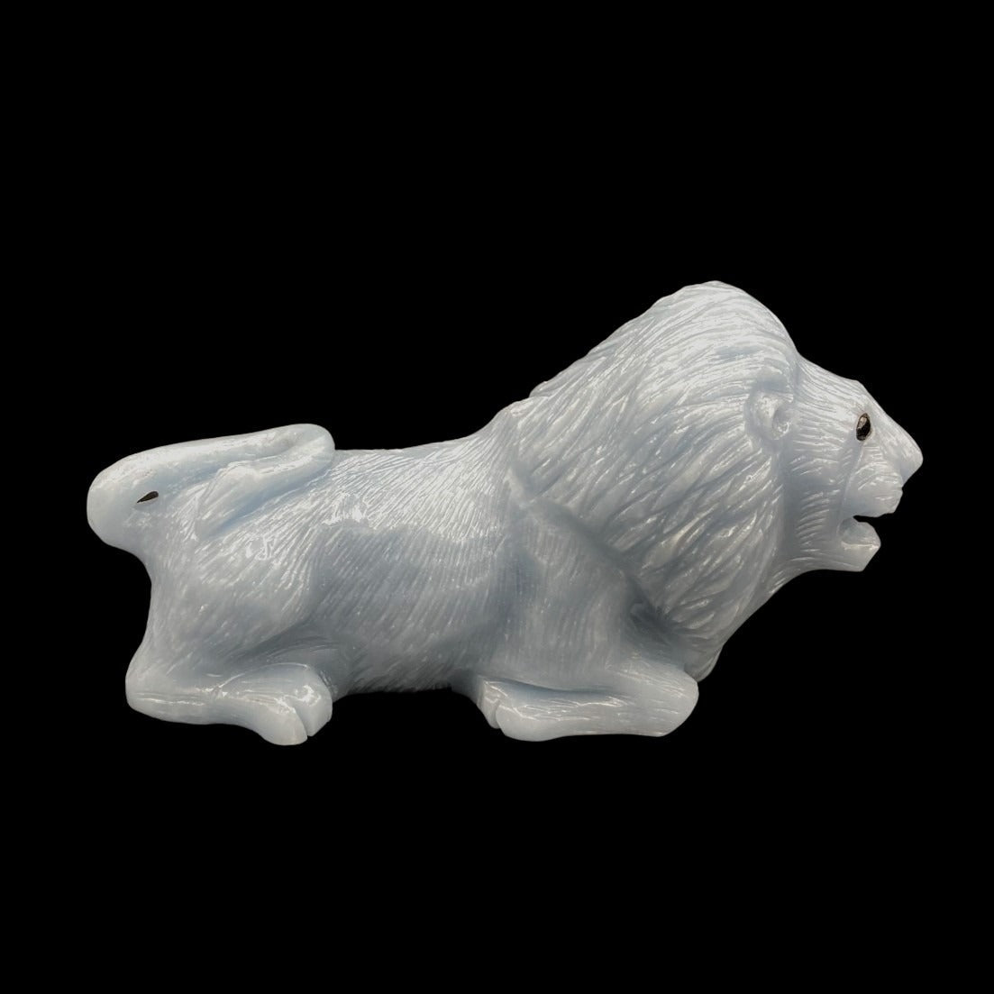 This is a beautiful lion figurine that has been hand carved out of Angelite crystal. This lion is in the laying down position on top of all four legs.