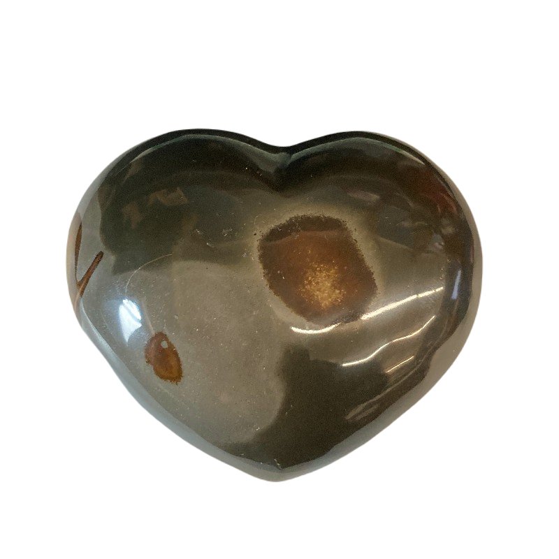 Set your heart on an adventure with this spectacular Polished Black, Grey, and Brown Polychrome Jasper Heart. This gemstone heart sparkles with shades of brown, black, and grey and resembles a beautiful multicolored landscape. Take a leap of faith and let this unique heart make your dreams come alive!