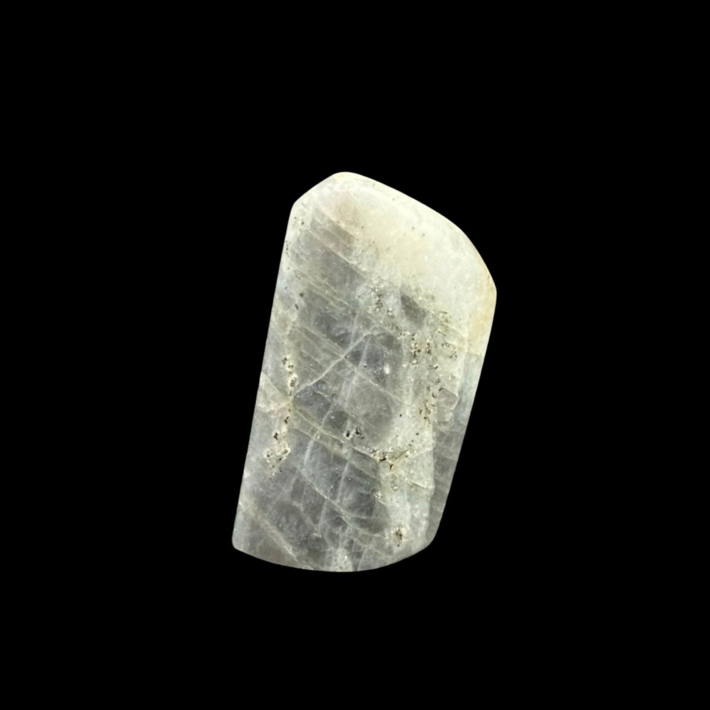 Labradorite is a plagioclase feldspar, a sodium calcium aluminum silicate with a hardness of 6 to 6.5.  Metaphysical properties: Magic, protection. Feng Shui element: Wind.