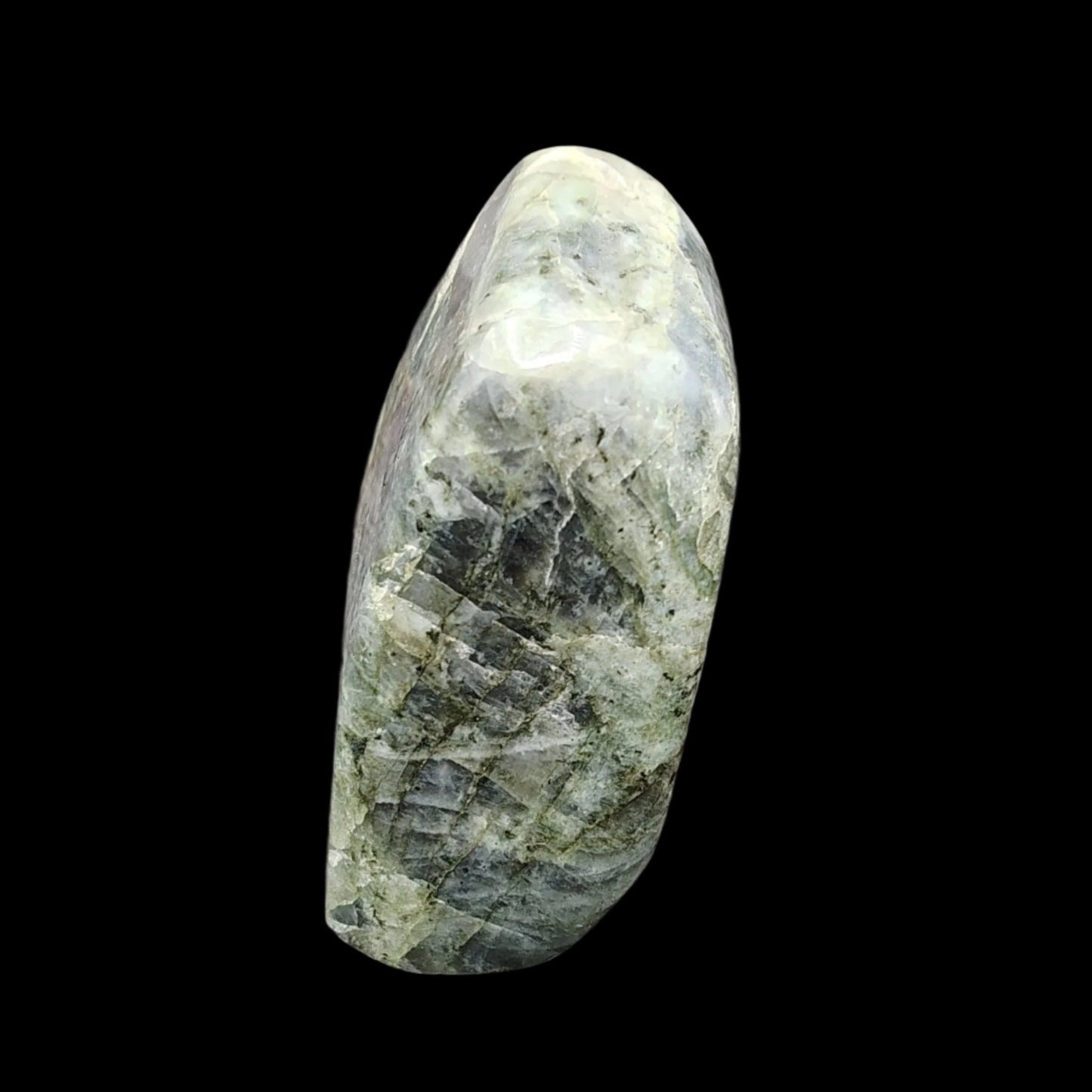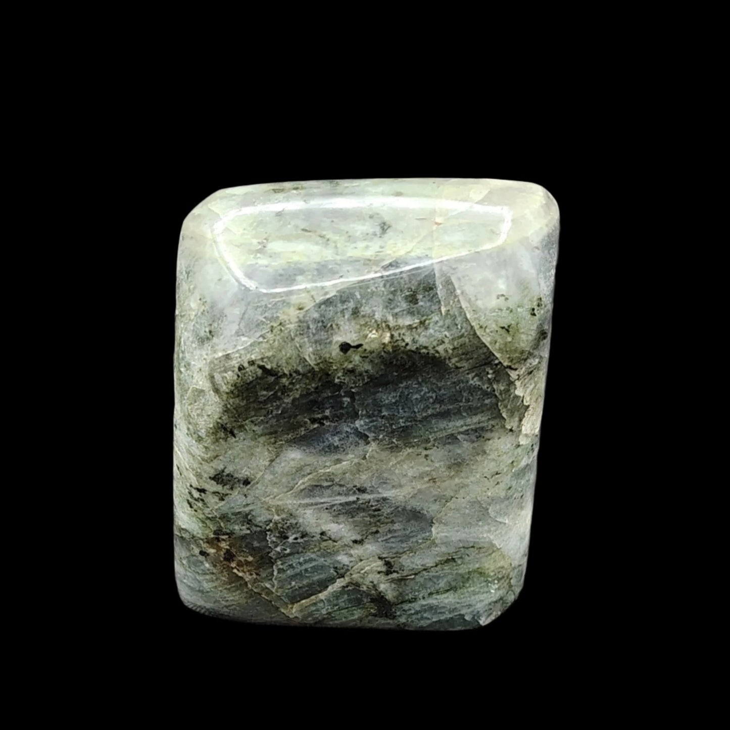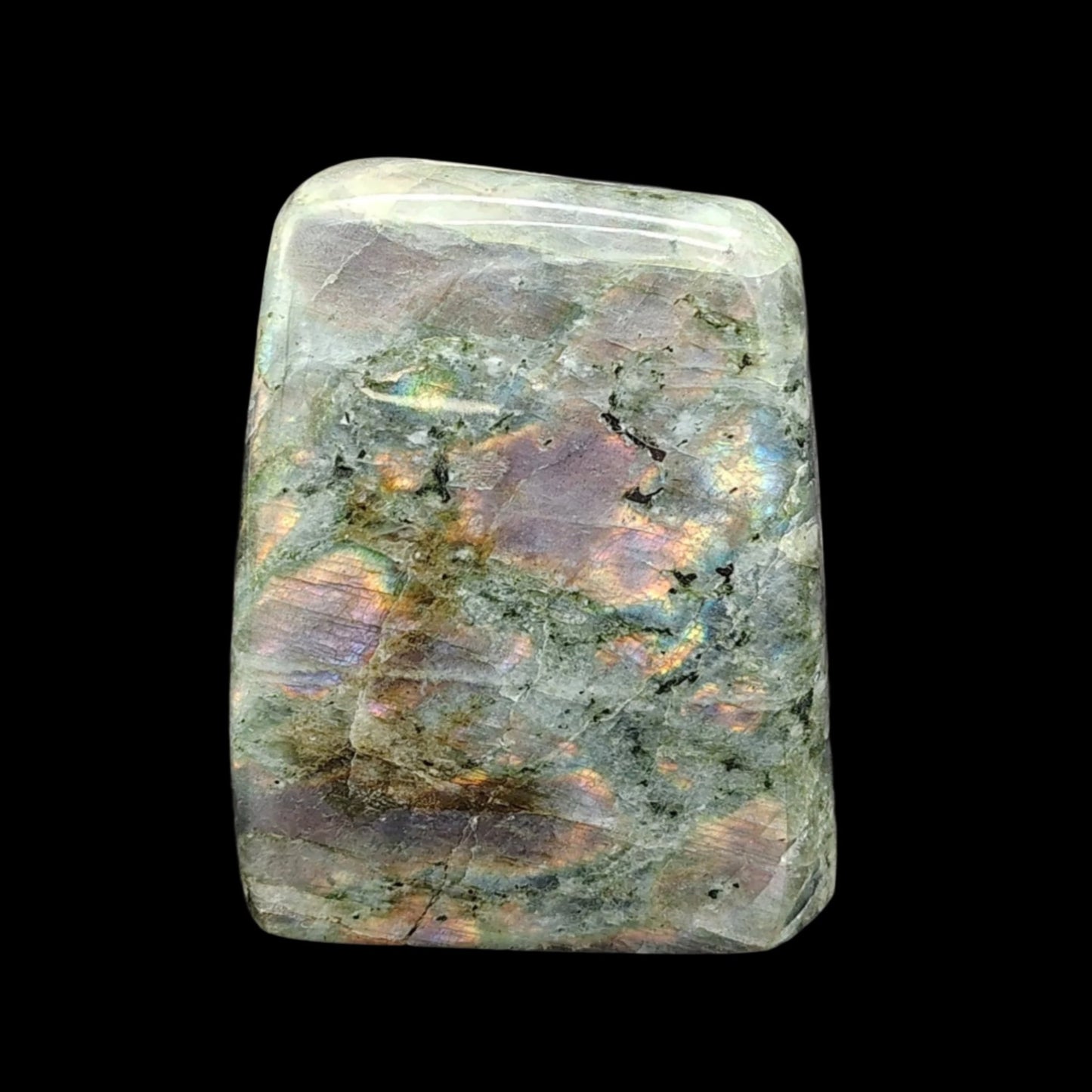 Beautiful authentic Labradorite mineral specimen. This polished specimen features flashes of purple. Place this piece in your space as a Feng Shui earth element for balancing the energy of your space. Well-known as the stone of magic.