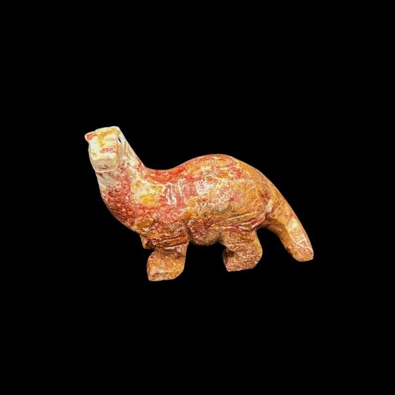 Polished Red Orange And White Brachiosaurus Dino Soapstone Figurine