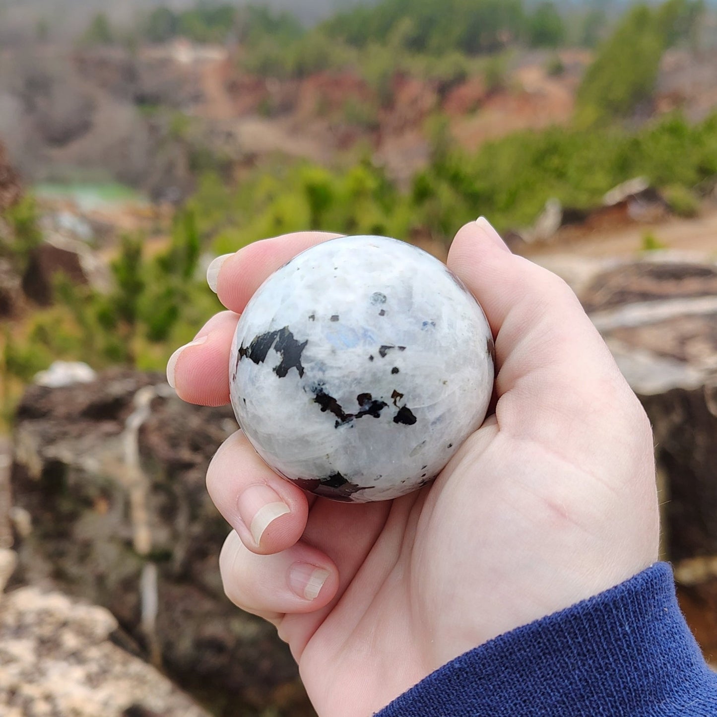 Measurements are approximately: This Rainbow Moon Stone is 2 inches in diameter.