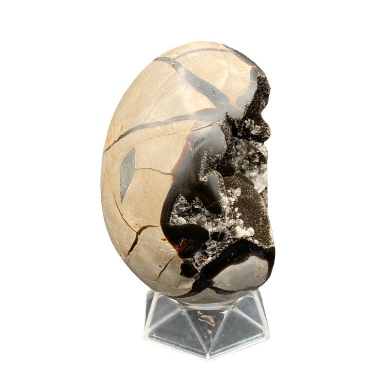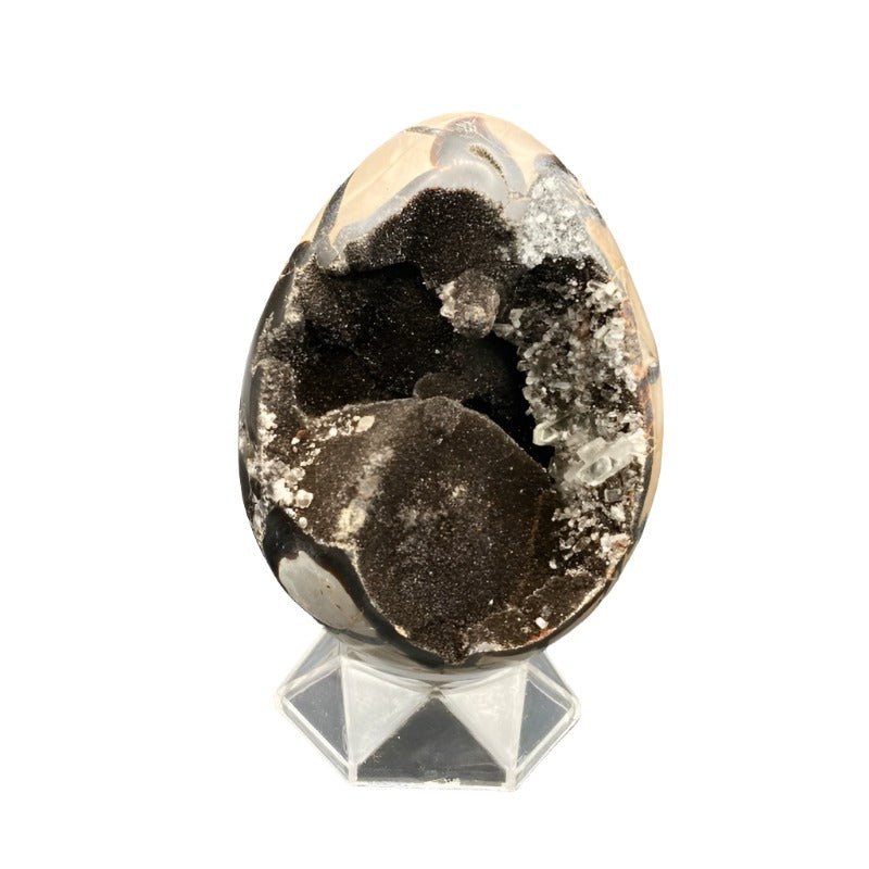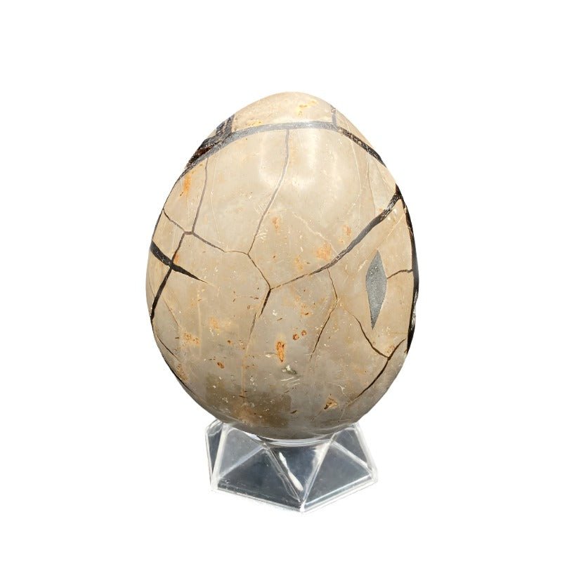 Measurements: This Septarian Egg stands 5 inches tall and is 4 inches in width. Also, the little acrylic stand that you see in the pictures is not included.
