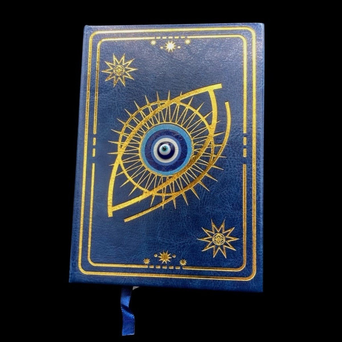 This Small Blue Evil Eye Journal is designed to help protect its users from harm. Featuring a blue evil eye symbol on the cover, this journal can be used to record thoughts, prayers, and affirmations for added protection. The small size makes it perfect to carry around, so you can feel safe and secure all day.