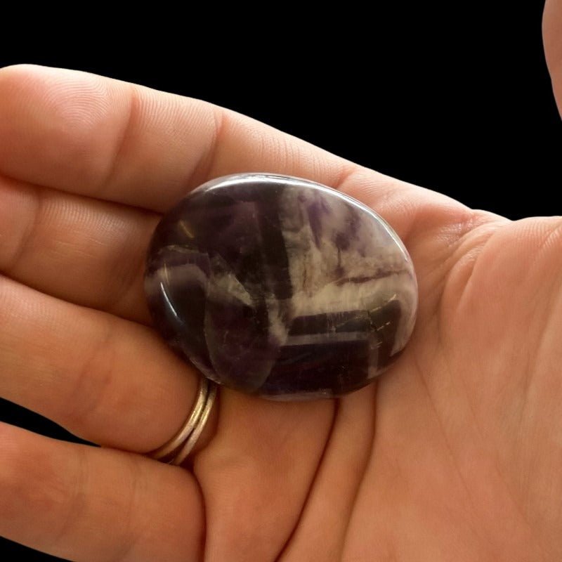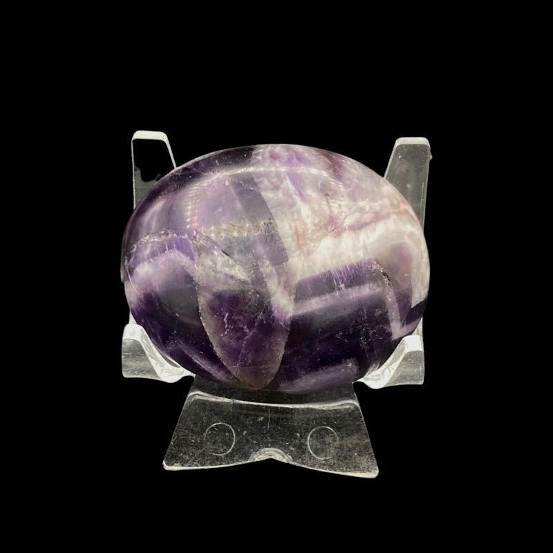 This gorgeous, polished chevron amethyst palm stone brings tranquility and peace into your home. Delicately crafted in gorgeous shades of purple and white, this small stone will bring subtle beauty and serenity to any setting. You won't regret investing in this tranquil gem!