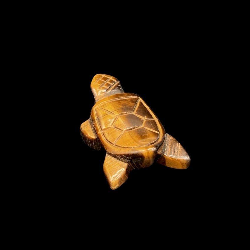 If you know someone that adores turtles and really likes the gemstone Tiger's Eye, this is a shoe in for a gift for them. When the light hits this turtle just right, this little turtle glimmers.